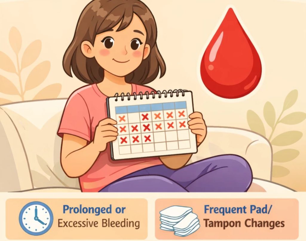 همیشه ایده خوبی است که در مورد پریودهای سنگین خود با پزشک صحبت کنید، به خصوص اگر این مشکل برای شما جدید است. این مشکل میتواند منجر به کمخونی (سطح پایین گلبولهای قرمز خون) شود که میتواند باعث احساس ضعف، خستگی یا تنگی نفس شود.