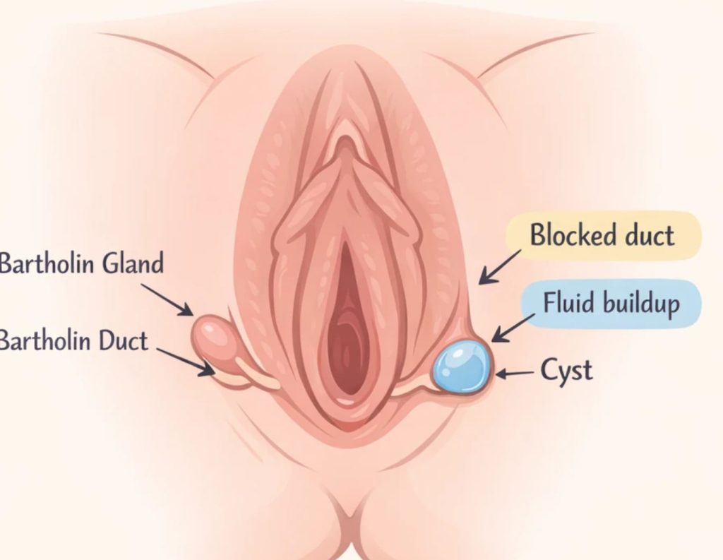 این مایع از طریق مجاری (لولهها) به واژن منتقل میشود. گاهی اوقات، یک یا هر دو غده بارتولن مسدود میشوند و باعث تجمع مایع و تشکیل کیست میشوند . این کیستها در بین افراد در سن باروری رایج هستند و از هر 10 زن، 2 نفر را تحت تأثیر قرار میدهند.