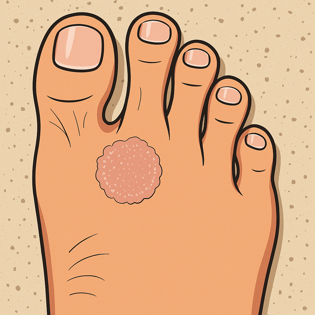 - پوست خشک و پوسته پوسته در کف پا. همچنین ممکن است در کنارههای پا و روی پاشنه پا ظاهر شود.