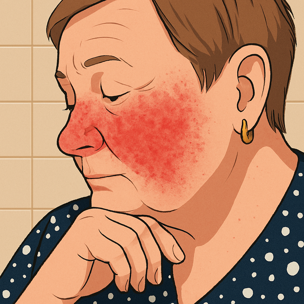 برای افرادی که پوست روشنتری دارند، نکته اصلی که ممکن است متوجه شوید قرمزی روی گونهها، بینی، چانه و پیشانی است. به ندرت، این رنگ میتواند روی گردن، سر، گوشها یا سینه شما ظاهر شود.