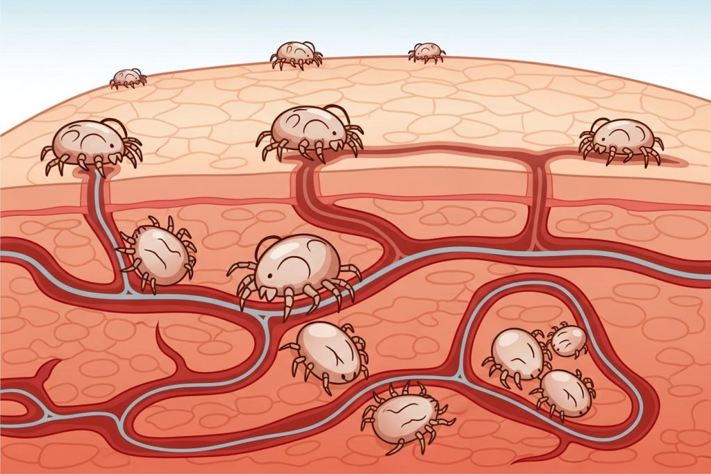همچنین ممکن است متوجه وجود سوراخهایی روی پوست خود شوید. این سوراخها، خطوط ریز، برآمده، سفید مایل به خاکستری یا به رنگ گوشت روی بدن شما هستند. این خطوط ناشی از کندن پوست توسط کنهها هستند.