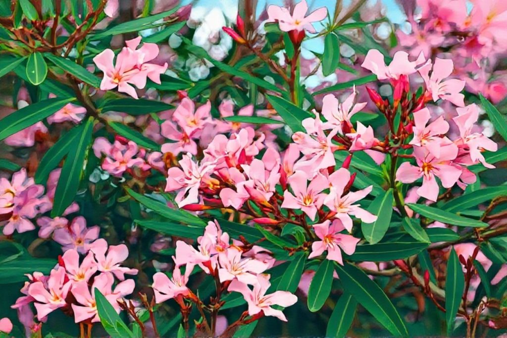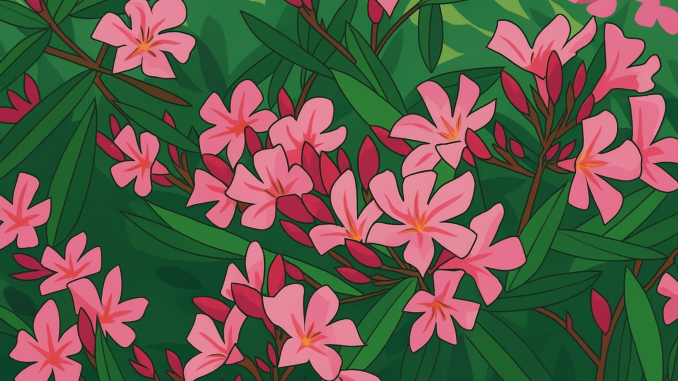 این درختچه بلند، برگ‌های بلند و چرمی دارد که در گروه‌های سه‌تایی رشد می‌کنند. خوشه‌های گل روشن در انتهای شاخه‌ها به رنگ‌های مختلف از قرمز و صورتی تا سفید شکوفا می‌شوند. تمام قسمت‌های این گیاه بسیار سمی هستند. فقط یک برگ برای کشتن یک فرد بالغ کافی است. ممکن است دچار درد شدید معده، اسهال، استفراغ، گشاد شدن مردمک چشم، سرگیجه و مشکلات تنفسی شوید.