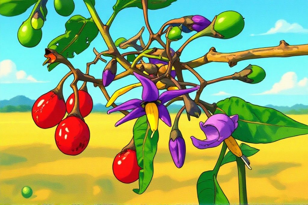 این گیاه چوبی چند ساله ساقه‌ای دارد که در طول سال رشد می‌کند. می‌تواند تا ۶ فوت برسد. گل‌های بنفش در گروه‌های سه تایی یا بیشتر در حدود ماه ژوئیه یا اوت شکوفا می‌شوند. بچه‌ها گاهی اوقات جذب این توت‌های گرد، آبدار، براق، قرمز و سمی می‌شوند. سم (سولانین) می‌تواند باعث سردرد، خواب‌آلودگی، دل‌درد، استفراغ، لرزش، کاهش تب ، گشاد شدن مردمک چشم و اسهال شود . اگر فکر می‌کنید کسی آن را خورده است، فوراً او را به پزشک برسانید.