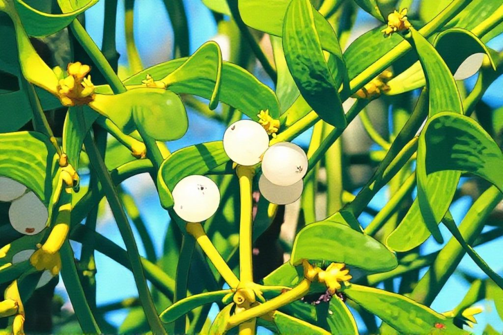این گیاه از درختان و درختچه‌های دیگر تغذیه می‌کند و به همین دلیل به یک انگل تبدیل شده است. ساقه‌های آن ضخیم و به راحتی می‌شکنند و شاخه‌های زیادی دارند. برگ‌ها اغلب ضخیم هستند و در تمام طول سال سبز می‌مانند. گل‌های کوچک زردرنگ آن گلبرگ ندارند. توت‌های کوچک و سفید آن یک دانه دارند و حاوی پالپی چسبناک و سمی هستند. این سنت رایج تعطیلات کریسمس را از کودکان و حیوانات خانگی دور نگه دارید. توت‌ها می‌توانند باعث اسهال شوند و ضربان قلب شما را کند یا متوقف کنند.