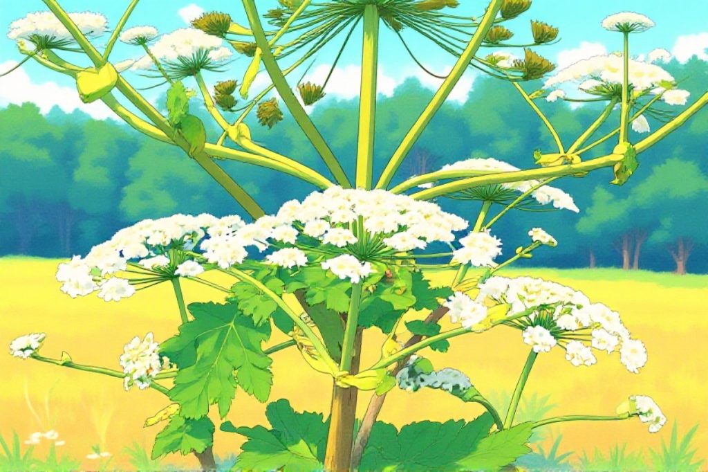 این گیاه در خاک غنی و مرطوب نزدیک جویبارها، نهرها و مزارع، به ویژه در شمال شرقی، زندگی می‌کند. این گیاه دارای گروه‌های چتری شکل از گل‌های سفید کوچک، برگ‌هایی با چین‌های عمیق و ساقه‌هایی با موهای سفید و لکه‌های بنفش است. ارتفاع آن تا ۱۵ فوت (حدود ۴.۵ متر) می‌رسد. شیره آن می‌تواند پوست شما را در برابر نور ماوراء بنفش حساس‌تر کند، که می‌تواند باعث تاول، سوختگی یا زخم شدن آن شود، که گاهی اوقات به طور دائم اتفاق می‌افتد. حتی می‌تواند به بینایی شما آسیب برساند.