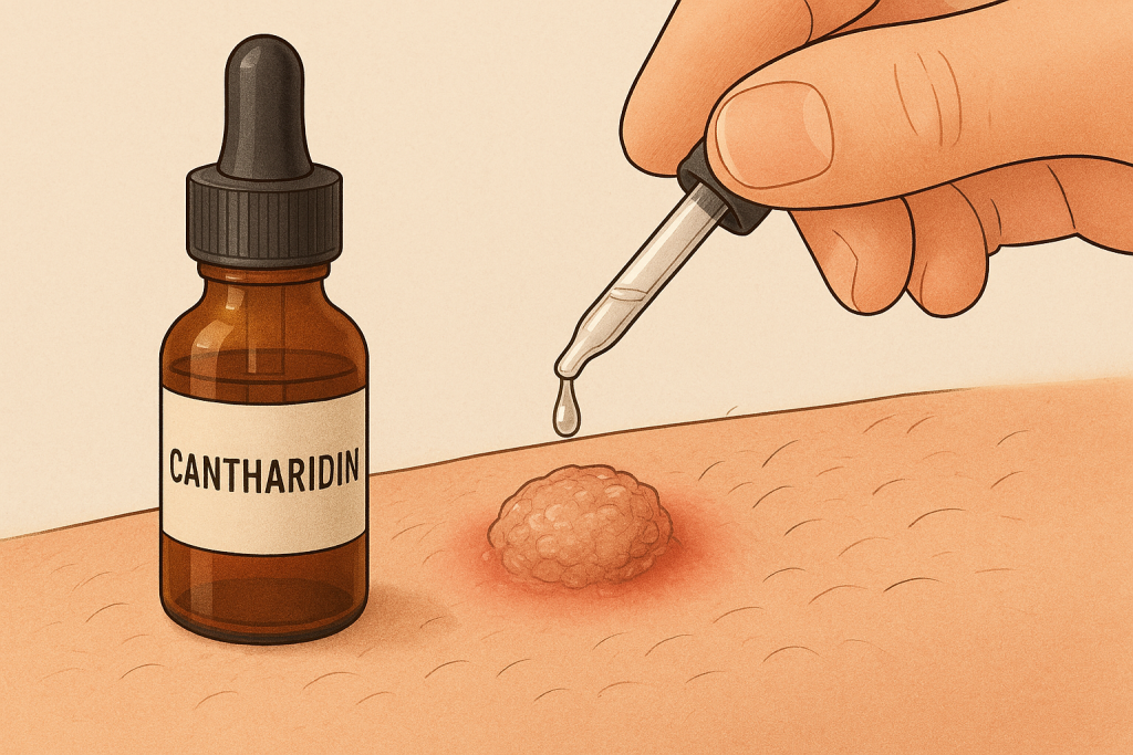 پزشک شما کانتاریدین مایع را روی زگیل شما قرار میدهد. طی هفتهی بعد، تاولی در اطراف زگیل تشکیل میشود که خونرسانی به آن را قطع میکند. یک هفته بعد، شما به مطب پزشک خود برمیگردید تا آنها بتوانند زگیل مرده را جدا کنند.