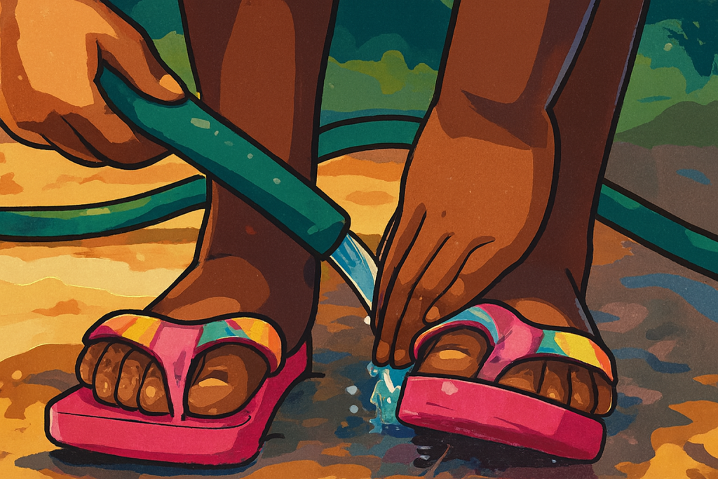 - در دوشهای عمومی، رختکنها و اطراف استخرهای عمومی، صندل یا دمپایی ضد آب بپوشید.