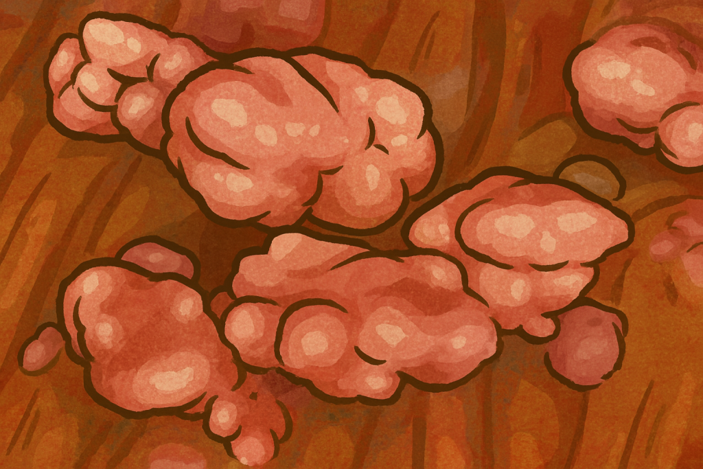این زگیلهای سریع الرشد، نخ مانند و نوکتیز به نظر میرسند، گاهی اوقات مانند برسهای کوچک. از آنجایی که آنها معمولاً روی صورت – اطراف دهان، چشمها و بینی – رشد میکنند، میتوانند آزاردهنده باشند، اگرچه معمولاً دردناک نیستند.