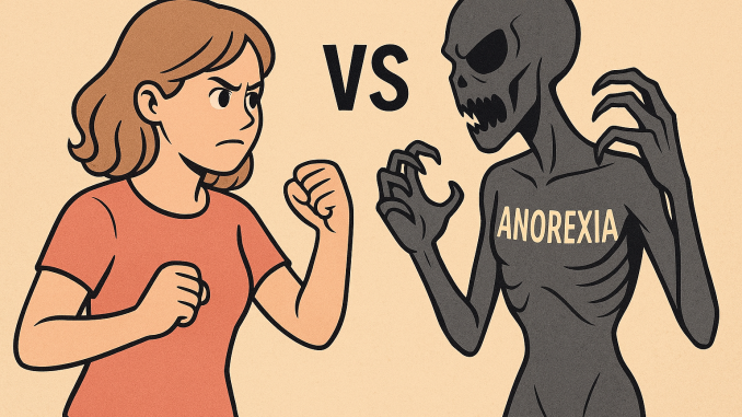 در شروع ترم دوم، یکی از همکلاسیهایم تصمیم گرفت در مورد مشکلم با من صحبت کند. او مرا متقاعد کرد که با یک مشاور در مدرسه صحبت کنم. بعد از چند ماه بحث عمیق و اشکهای فراوان، به خانه برگشتم تا با والدینم صحبت کنم. به آنها اعتراف کردم که بیاشتهایی عصبی دارم و کمک دریافت میکنم. آنها گفتند که نگران من بودهاند، اما نمیدانستند چگونه با این وضعیت برخورد کنند. آنها به من گفتند که همیشه در کنارم خواهند بود.