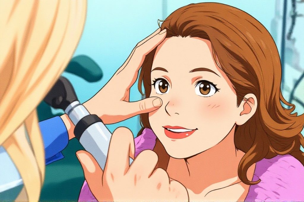 پوست اطراف چشم. پزشک می‌تواند این ناحیه را از نظر بیماری‌های پوستی و ساییدگی بررسی کند.