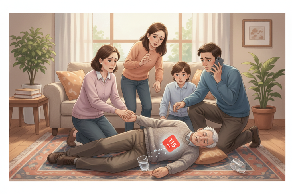 • T به معنی  زمان است – اگر شما یا شخص دیگری علائمی مانند این را دارید، فوراً با 115 تماس بگیرید