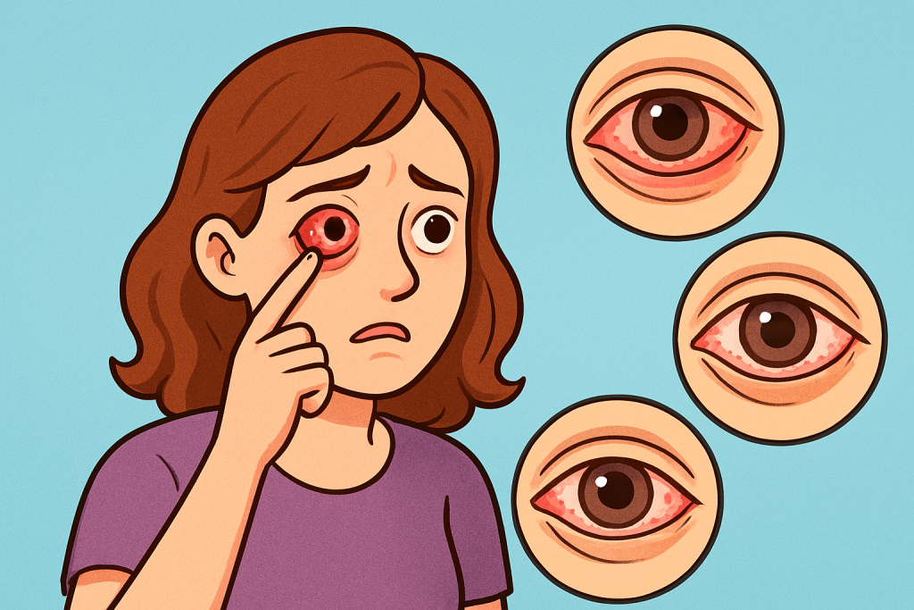 - قرمزی، آبریزش، خارش یا خشکی چشم