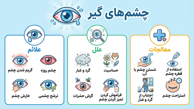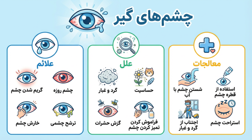آلرژی . این شایعترین علت است. چشمان شما ممکن است به چیزی در هوای بیرون، خانه یا محل کار شما واکنش نشان دهند. این آلرژنها میتوانند شامل موارد زیر باشند: