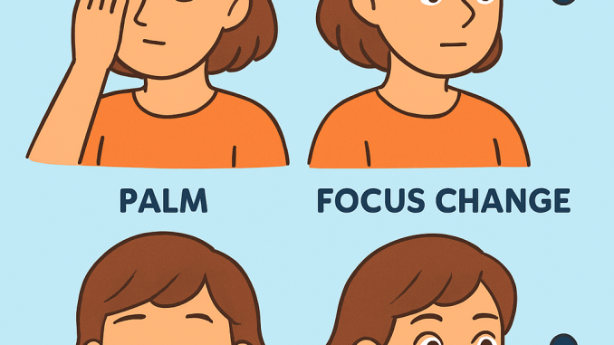 مرحله ۲: وقتی دستتان کاملاً باز شد، به چیزی در دوردست، فراتر از انگشتتان نگاه کنید. چند ثانیه به آنجا تمرکز کنید، سپس دوباره به انگشتتان نگاه کنید.