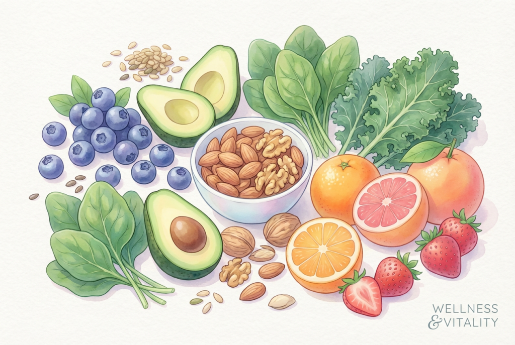 توتها سرشار از آنتیاکسیدانها هستند، مواد مغذی که با استرس اکسیداتیو ناشی از رادیکالهای آزاد که میتوانند منجر به پیری پوست، خشکی و کدری پوست شوند، مبارزه میکنند. این به لطف ترکیبی قوی از ویتامین C و مواد مغذی گیاهی، از جمله فلاونوئیدهایی به نام آنتوسیانینها (منبع رنگهای تیره آنها) و کاروتنوئیدها است. توت فرنگی به ویژه در ارتقاء سلامت پوست امتیاز بالایی کسب میکند و پس از آن تمشک قرمز، تمشک سیاه، بلوبری و شاهتوت قرار دارند.