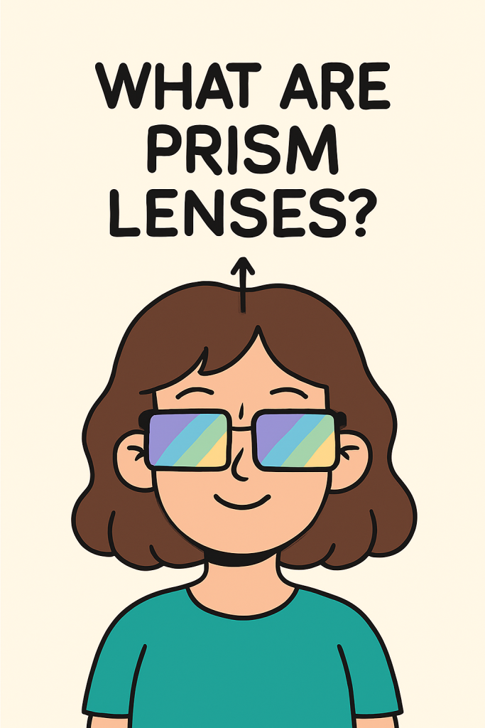 لنزهای منشوری از پلاستیک یا شیشه ساخته میشوند و به شکل گوه یا مثلث هستند. پرتوهای نور هنگام ورود به لنز منشوری و هنگام خروج دوباره تغییر جهت میدهند. این ویژگی برای اطمینان از تشکیل تصاویر اشیاء در همان ناحیه شبکیه در هر دو چشم استفاده میشود.