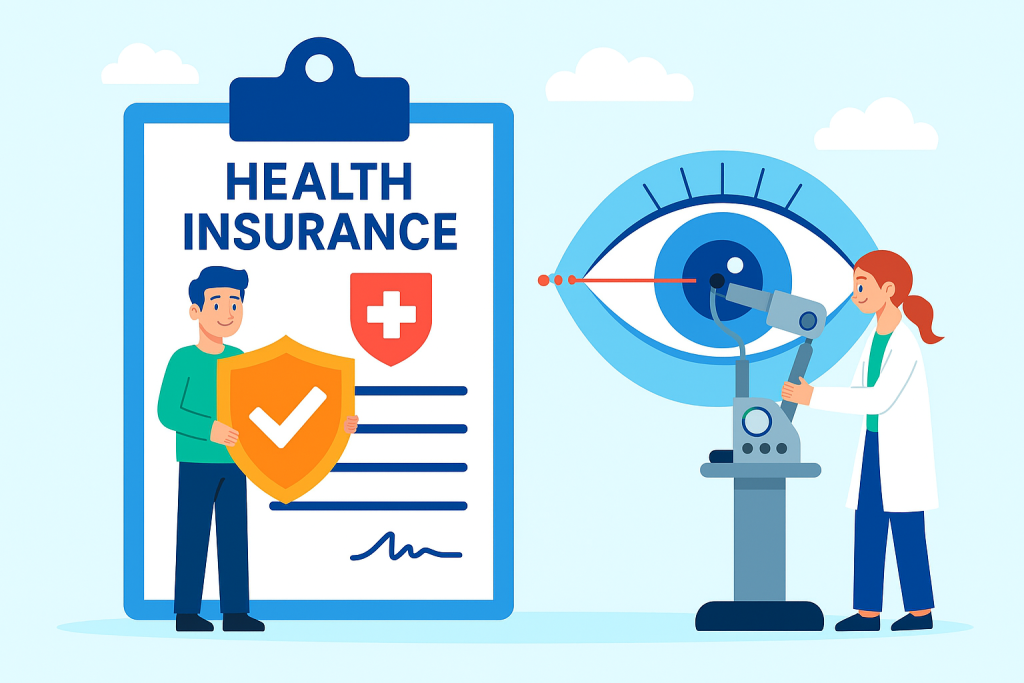 بیمه درمانی معمولاً هزینه جراحی انکساری یا لیزری چشم را پوشش نمیدهد ، اما برخی از شرکتها در صورت برآورده شدن معیارهای خاص، این هزینه را پرداخت میکنند. برخی از شرکتهای بیمه ، طرح چشم پزشکی ارائه میدهند که ممکن است قیمت تخفیفدار یا پوشش جزئی ظاهری برای جراحی لیزر چشم ارائه دهد. از آنجا که جراحی لیزر چشم یک جراحی انتخابی است، بسیاری از شرکتهای بیمه درمانی آن را زیبایی و غیر ضروری از نظر پزشکی میدانند. شرایط خاصی که تحت آن طرحهای بیمه درمانی ممکن است در شرایط نادر جراحی انکساری یا لیزری چشم را پوشش دهند عبارتند از: