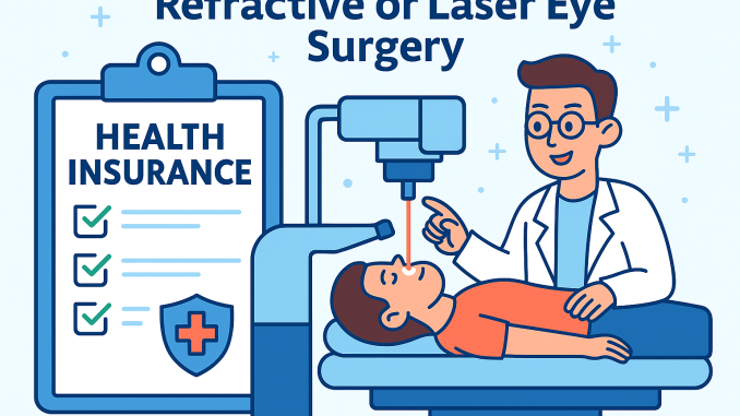 بیمه درمانی معمولاً هزینه جراحی انکساری یا لیزری چشم را پوشش نمیدهد ، اما برخی از شرکتها در صورت برآورده شدن معیارهای خاص، این هزینه را پرداخت میکنند. برخی از شرکتهای بیمه ، طرح چشم پزشکی ارائه میدهند که ممکن است قیمت تخفیفدار یا پوشش جزئی ظاهری برای جراحی لیزر چشم ارائه دهد. از آنجا که جراحی لیزر چشم یک جراحی انتخابی است، بسیاری از شرکتهای بیمه درمانی آن را زیبایی و غیر ضروری از نظر پزشکی میدانند. شرایط خاصی که تحت آن طرحهای بیمه درمانی ممکن است در شرایط نادر جراحی انکساری یا لیزری چشم را پوشش دهند عبارتند از: