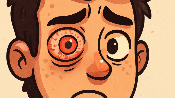 - قرمزی، به خصوص در اطراف عنبیه چشم