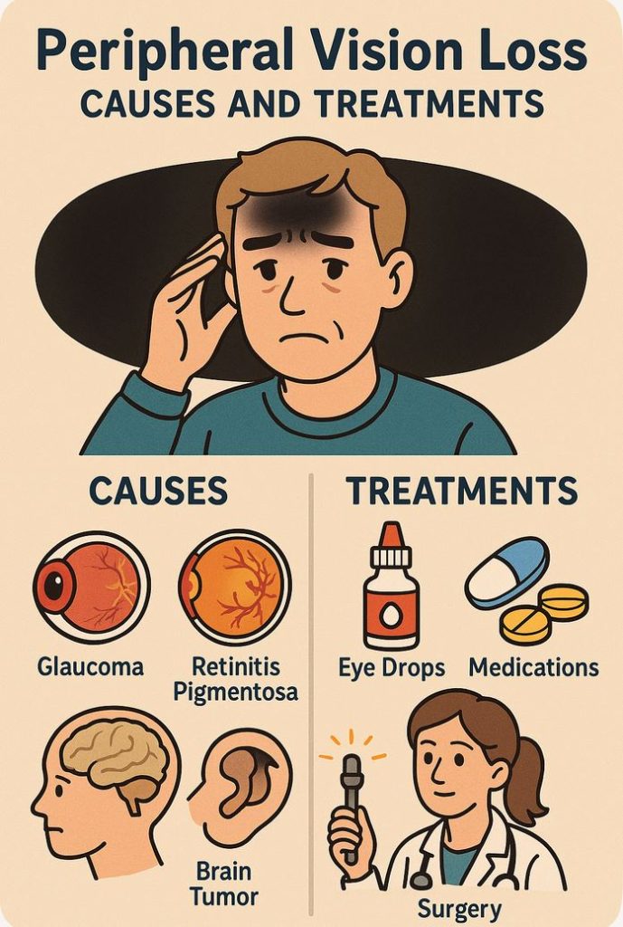 گلوکوم : این بیماری در اثر تجمع مایع و فشار در چشم ایجاد میشود. این بیماری میتواند به عصبی که اطلاعات را از چشم به مغز منتقل میکند، آسیب برساند. وقتی این اتفاق میافتد، ممکن است دید محیطی خود را از دست بدهید. با گذشت زمان، ممکن است تمام بینایی خود را از دست بدهید. خوشبختانه، اگر پزشکان گلوکوم شما را زود تشخیص دهند و درمان را شروع کنند، میتوانند از کاهش بینایی جلوگیری کنند.
