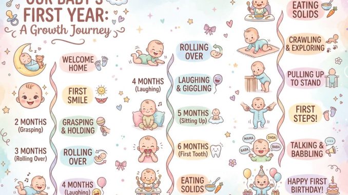 کودک شما در طول سال اول زندگی‌اش به سرعت رشد و تغییر خواهد کرد. هر کودکی متفاوت است و کوچولوی شما با سرعت خودش به نقاط عطف رشدی خود خواهد رسید. با این حال، برخی از محدوده‌های سنی معمول وجود دارد که در آنها برخی از هیجان‌انگیزترین پیشرفت‌ها اتفاق می‌افتد. با ورود کودکتان به هر مرحله جدید، آن را تماشا کنید و لذت ببرید.