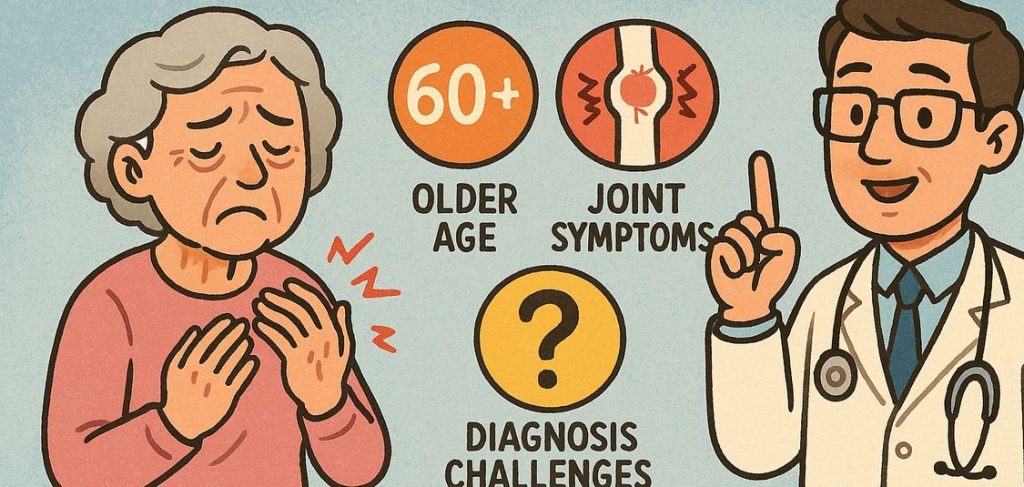 آرتریت روماتوئید با شروع در سنین بالا با آرتریت روماتوئیدی که در سالهای اولیه زندگی شروع میشود، متفاوت است. همچنین با مجموعهای جداگانه از چالشهای درمانی همراه است.