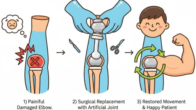 اگر بیماری مانند آرتریت روماتوئید یا آسیب دیدگی به آرنج شما آسیب رسانده باشد، پزشک ممکن است جراحی تعویض مفصل را توصیه کند تا درد کمتری داشته باشید و بتوانید بهتر حرکت کنید.