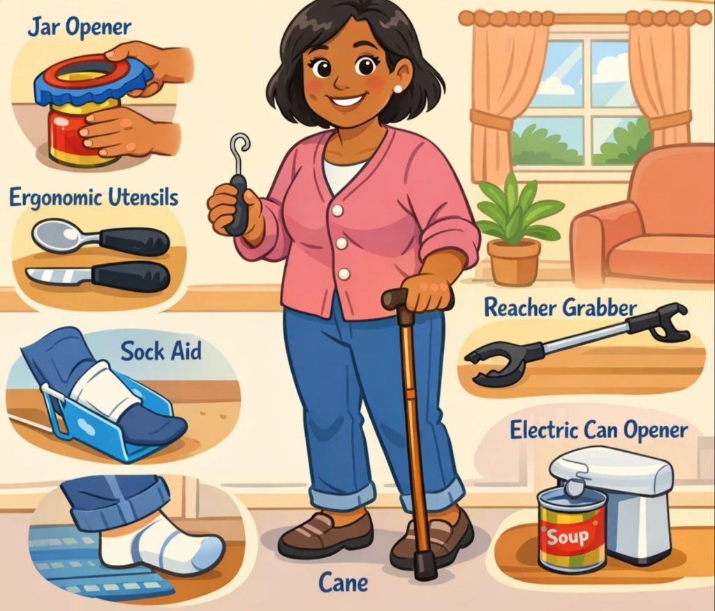 وسایل کمکی، محصولات و ابزارهایی هستند که میتوانند زندگی با آرتریت روماتوئید را آسانتر کنند. آنها ممکن است چیزهای جدیدی باشند که به خانه خود اضافه میکنید یا چیزهایی را که از قبل دارید بهبود میبخشند. این وسایل ساده به شما امکان میدهند با سهولت بیشتری آشپزی، تمیز کردن، لباس پوشیدن، حمام کردن و حرکت کردن را ادامه دهید.